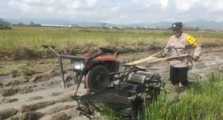 Dalam upaya mendukung program tersebut, Kapolsek Maritengngae, IPTU Antonius, bersama jajarannya terjun langsung ke lapangan untuk berbaur dengan para petani setempat.