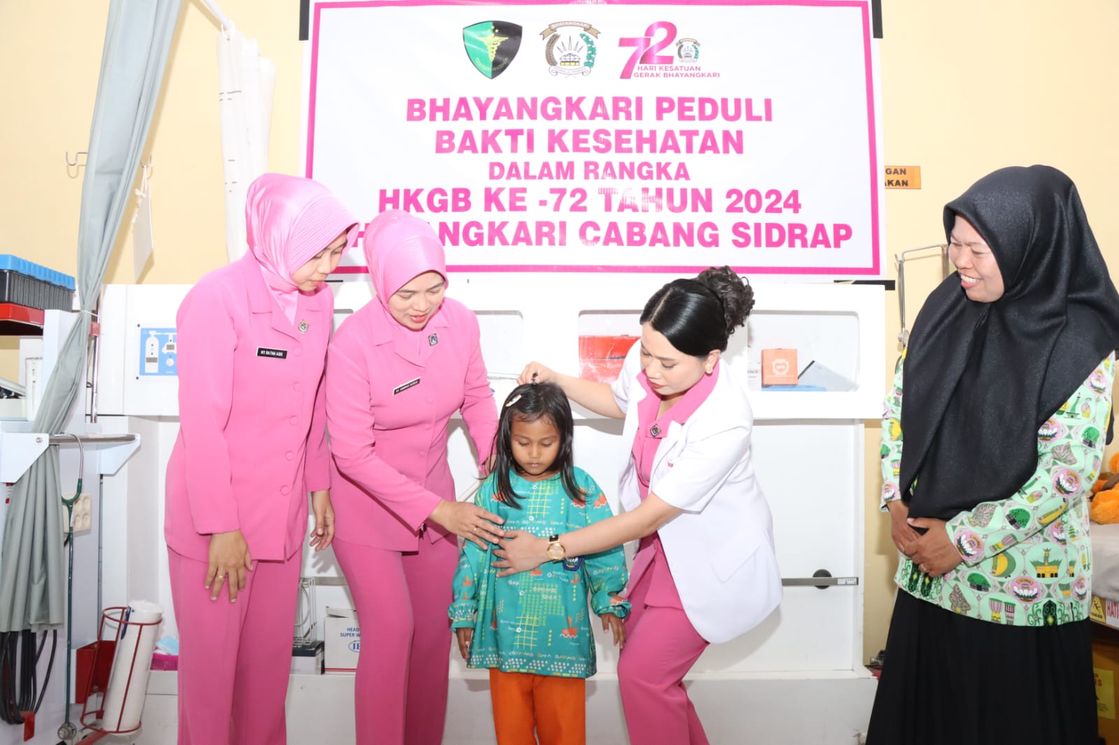 Ketua Bhayangkari Polres Sidrap, Ny. Dian Fantry mengatakan bahwa kegiatan ini merupakan bentuk nyata kepedulian Bhayangkari terhadap kesehatan anak serta Anggota Bhayangkari Cabang Sidrap.