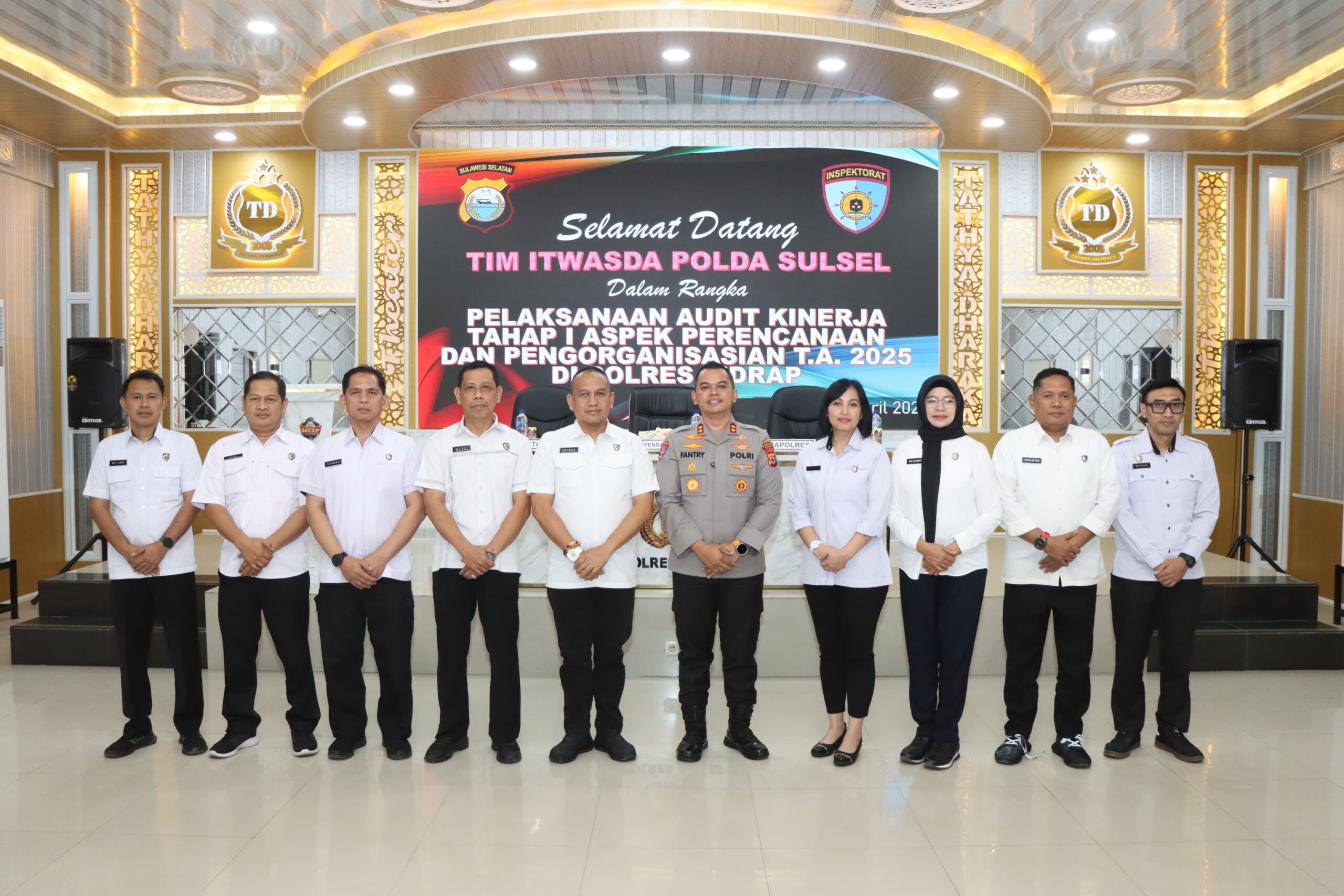 INTEL NEWS MY ID , – SIDRAP – Kapolres Sidrap AKBP Fantry Taherong, menerima kunjungan dari Tim Inspektorat Pengawasan Daerah (Itwasda) Polda Sulawesi Selatan dalam rangka Pelaksanaan Audit Kinerja Tahap I Tahun Anggaran 2025, yang meliputi aspek perencanaan dan pengorganisasian. Rabu (23/04/25)