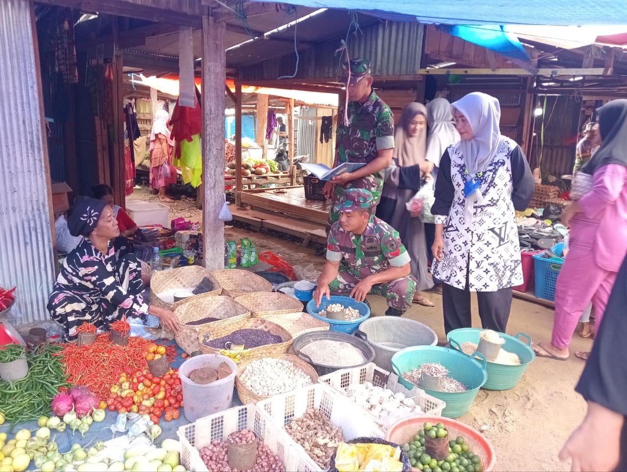 INTEL NEWS MY ID , -Sidrap, – Kehadiran TNI di tengah masyarakat kembali terlihat nyata. Babinsa Koramil 1420-01/Panca Lautang, Sertu Isman dan Koptu Parondongan, turun langsung memantau harga dan ketersediaan bahan pokok di Pasar Sentral Bilokka, Desa Bilokka, Kecamatan Panca Lautang, Kabupaten Sidrap. Kamis (11/4/2025).