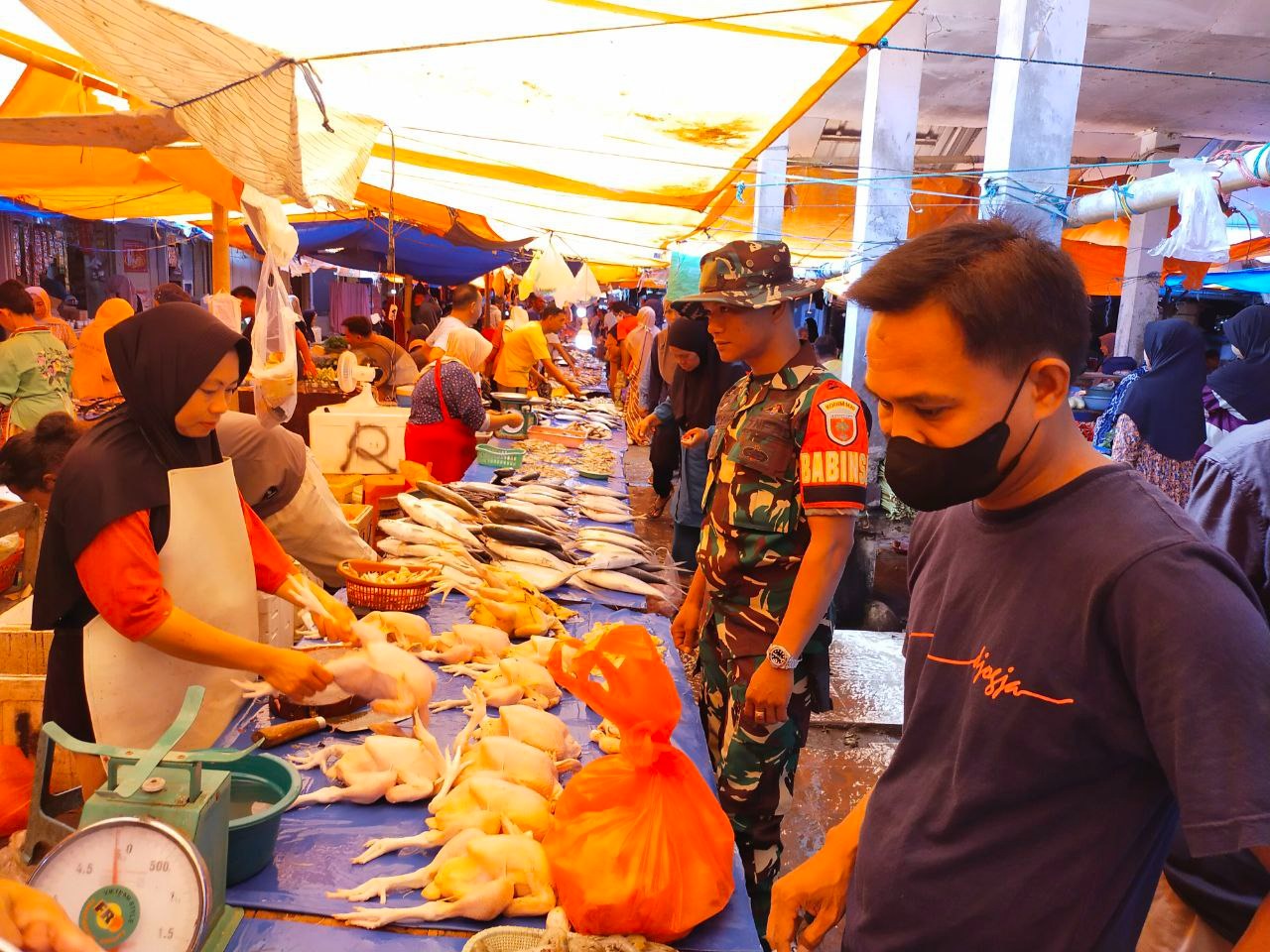 INTEL NEWS MY ID , – Sidrap, – Bintara Pembina Desa (Babinsa) Koramil 1420-06/Panca Rijang, Sertu Alimuddin, melakukan pemantauan harga dan ketersediaan bahan pokok di Pasar Sentral Rappang, Kabupaten Sidenreng Rappang, Rabu (16/4/2025).