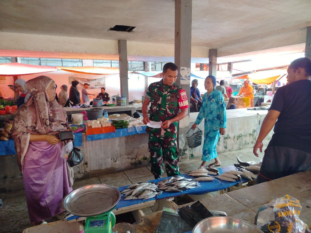 Dengan senyum khasnya, Sertu Zaenuddin berdialog langsung dengan para penjual, mencatat satu per satu harga kebutuhan pokok, mulai dari beras, minyak goreng, hingga cabai dan daging. Aksinya pun menarik perhatian banyak warga.