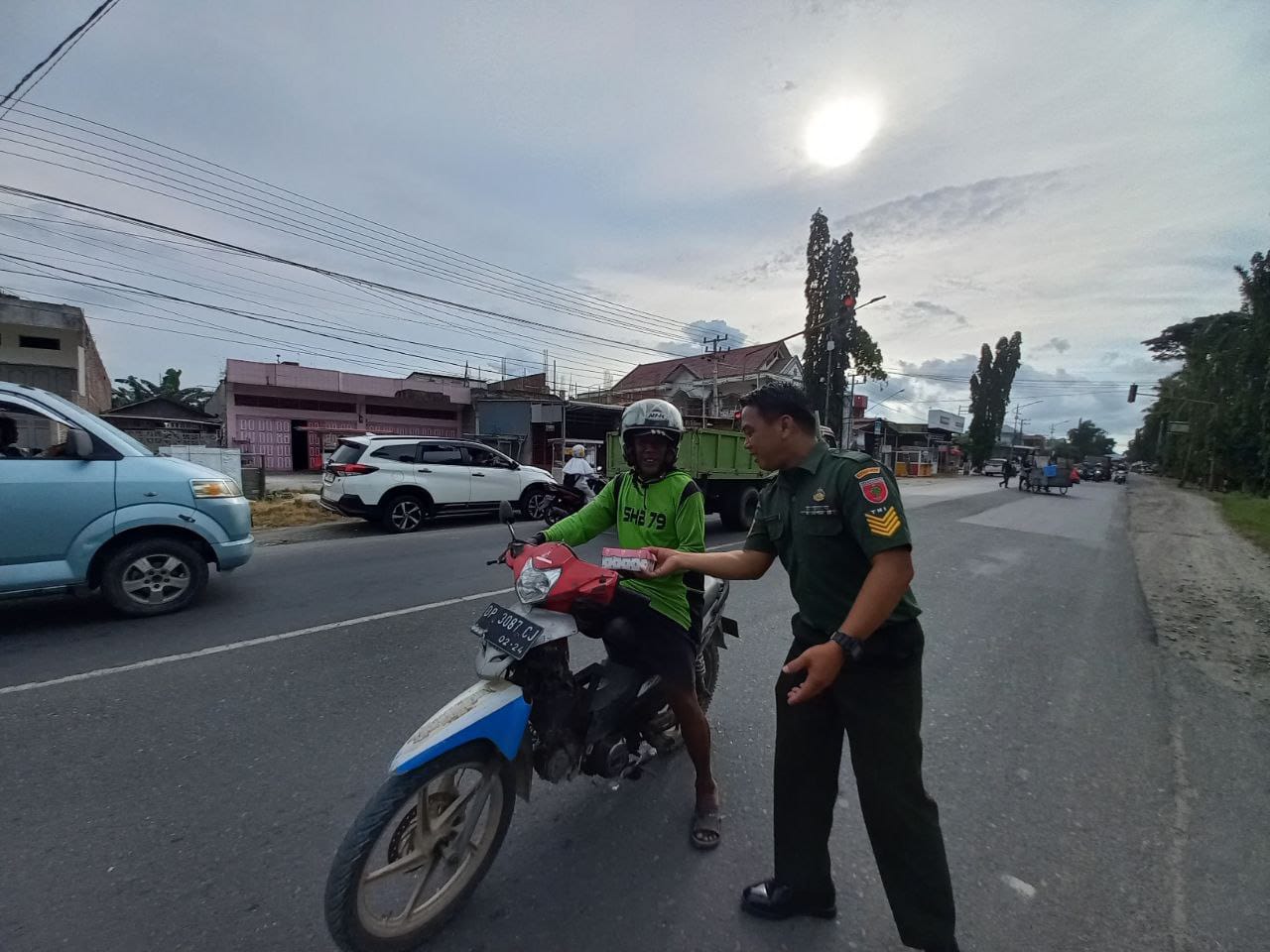 INTEL -NEWS MY ID –Kasdim 1420/Sidrap Mayor Inf Wahyudi, S.E. didampingi perwakilan anggota dan Ibu Persit Kodim 1420/Sidrap membagikan makanan siap santap untuk berbuka puasa kepada masyarakat yang melintas di depan Makodim di Jalan Jenderal Sudirman Kel. Majjeling Wattang Kec. Maritengngae Kab. Sidrap, Senin (3/3/2025).