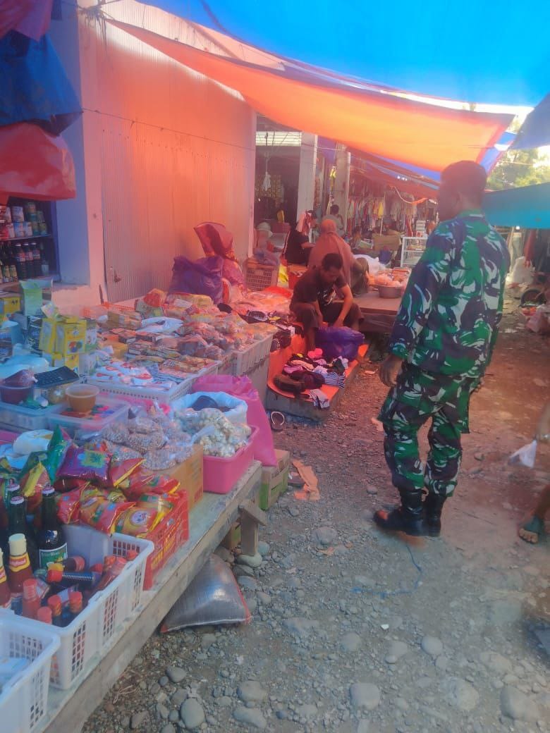 INTEL -NEWS MY ID ,-SIDRAP Babinsa Desa Dongi Koramil 1420-05/Dua Pitue Setu Bustan turun ke Pasar Tradisional Dongi Desa Dongi Kecamatan Dua Pitue Kabupaten Sidrap untuk mengecek ketersediaan dan harga bahan pokok, Sabtu (14/06/2025)
