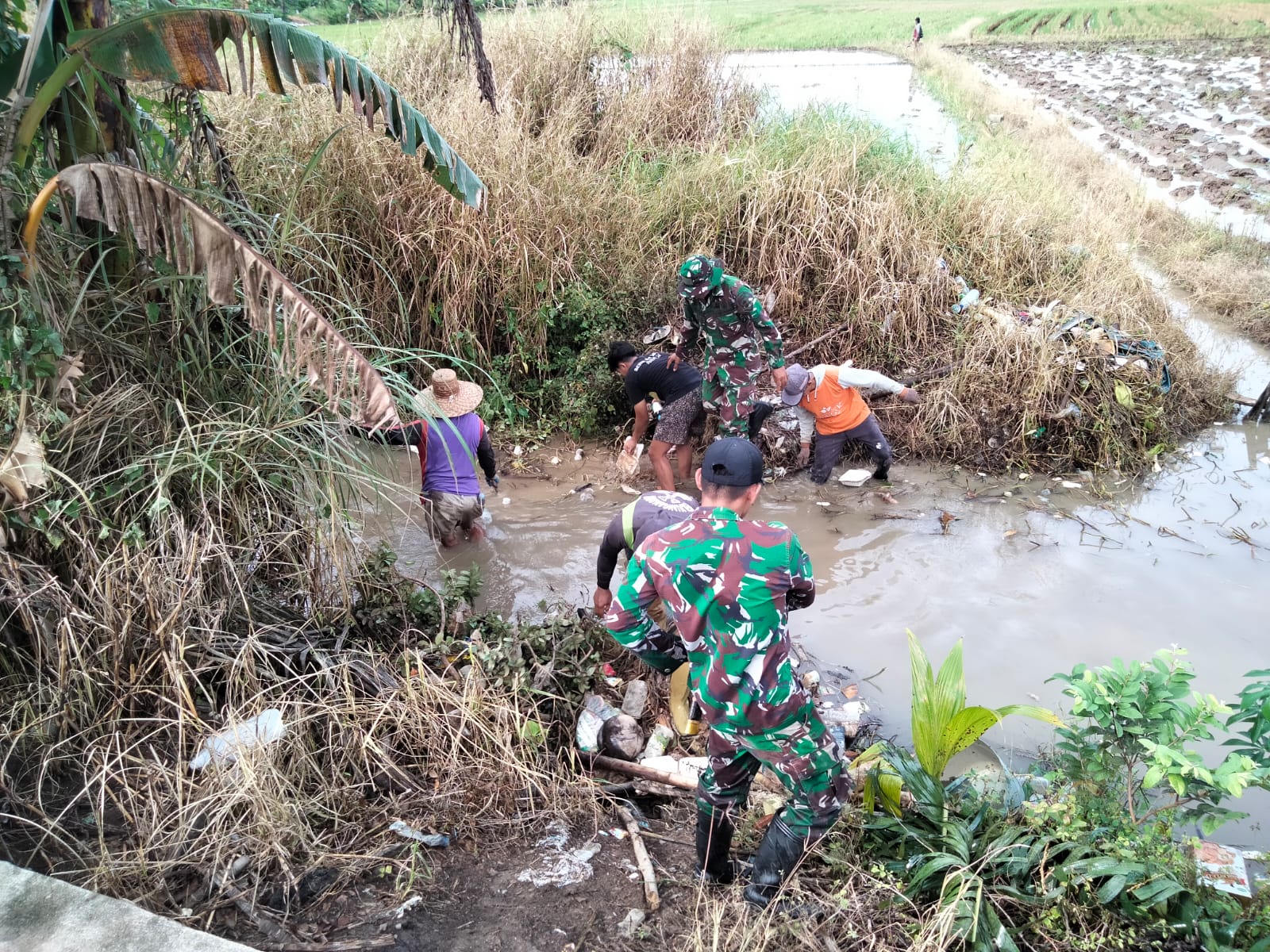 Dukung Peningkatan Produksi Pertanian Babinsa Kerja Bakti Bersihkan Saluran Irigasi