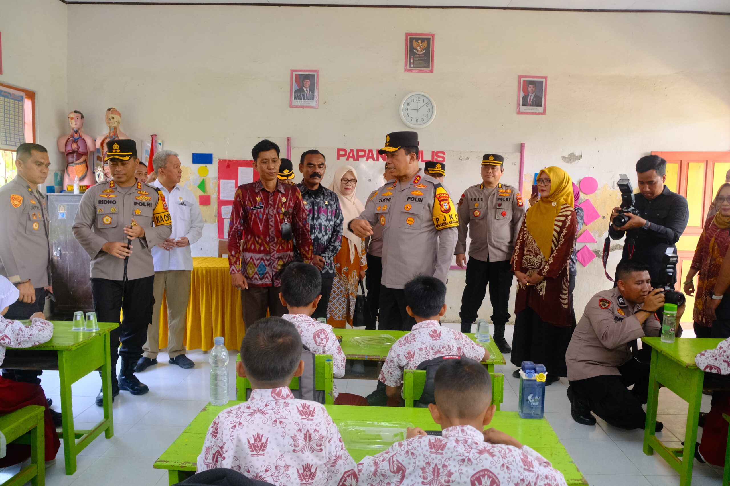 INTEL -NEWS my id , – Wajo Kapolda Sulawesi Selatan, Irjen Pol. Yudhiawan S.H., S.I.K., M.H., M.Si., bersama Ketua Bhayangkari Daerah Sulsel, Ny. Yunita Yudhiawan, serta Pejabat Utama Polda Sulsel, melakukan peninjauan langsung program Pembagian Makan Gratis Bergizi di SDN 96 Simpursia, Kabupaten Wajo, Kamis (20/02/25).
