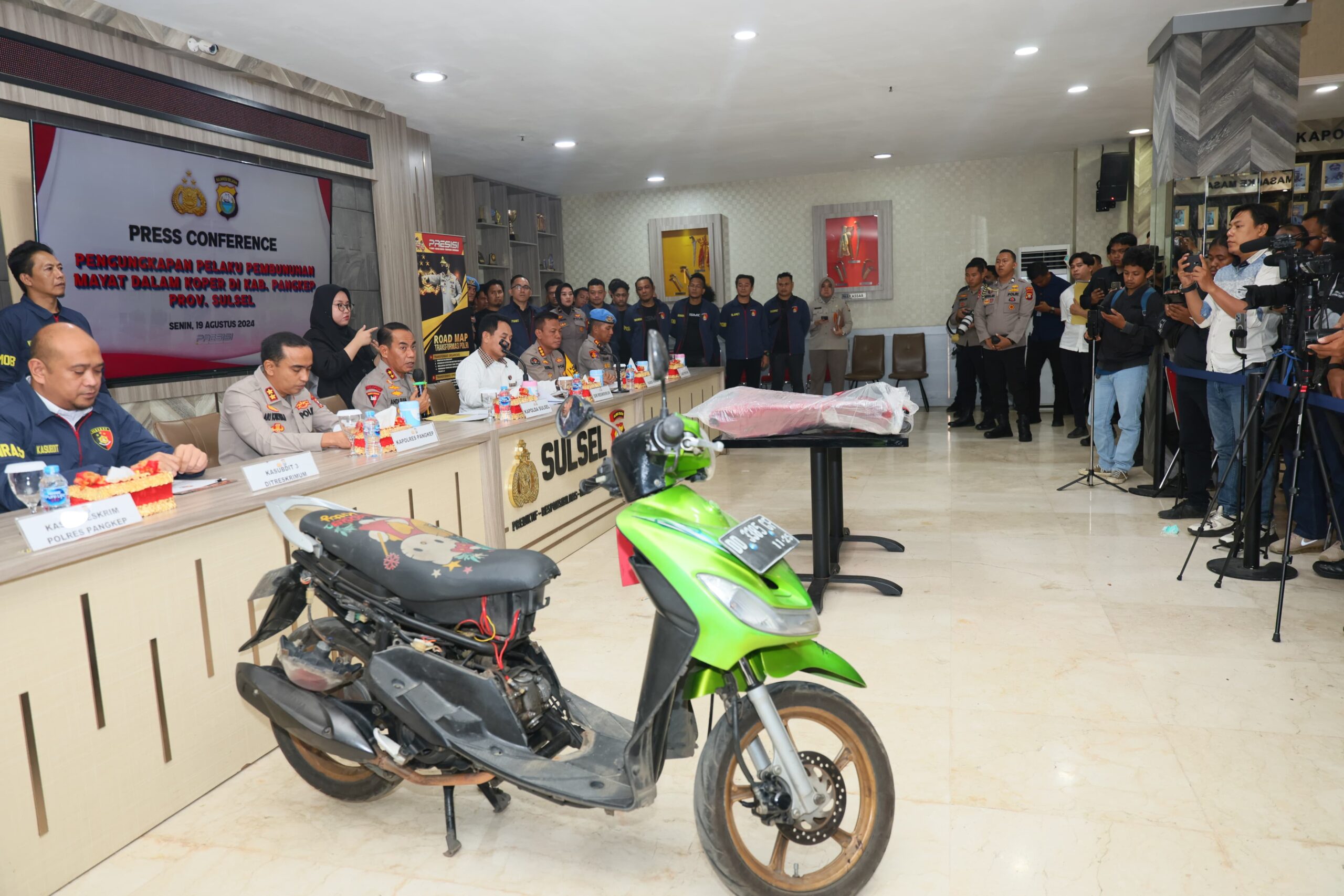 POLDA SULSEL GELAR KONFERENSI PERS PENGUNGKAPAN MAYAT DALAM KOPER DI PANGKEP