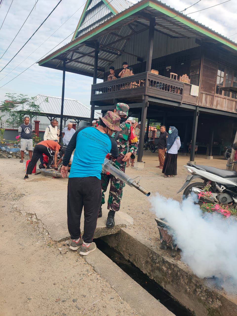 “Sasaran karya Bhakti yang kita gelar kali ini sebagai rangkaian Kegiatan HUT TNI, tidak hanya pembersihan lingkungan, tapi kita bekerjasama dengan Pihak Puskesmas Rappang untuk dilakukan Fogging guna mencegah Berkembangnya biaknya Jentik penyebab DBD” Ungkap Bati Tuud.