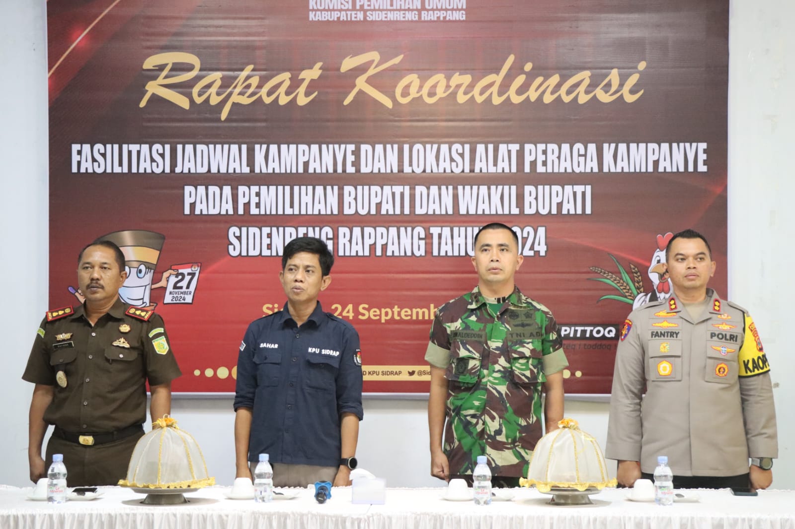 INTEL- NEWS my id , -SIDRAP – Kapolres Sidrap, AKBP Dr. Fantry Taherong. SH.,S.I.K.,MH menghadiri rapat koordinasi (rakor) terkait penentuan jadwal kampanye dan penentuan lokasi alat peraga kampanye dalam rangka pelaksanaan Pemilihan Kepala Daerah (Pilkada) di Kabupaten Sidrap. Selasa (24/09/24) siang.