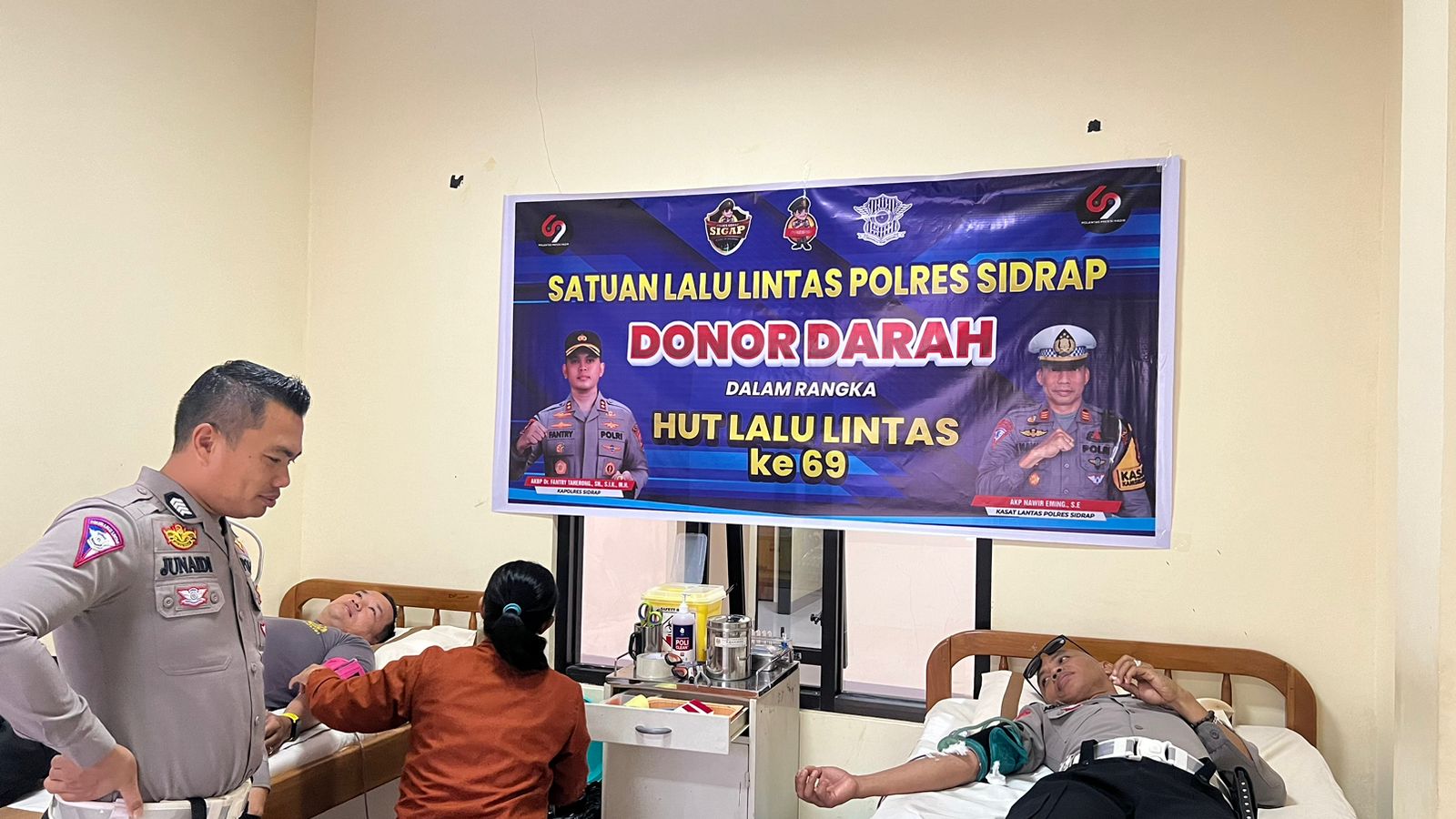 INTEL-NEWS my.id , -SIDRAP – Dalam rangka menyambut Hari Ulang Tahun (HUT) Lalulintas Bhayangkara ke-69, Satuan Lalu Lintas (Sat Lantas) Polres Sidrap menggelar aksi sosial donor darah. Kegiatan ini berlangsung pada Selasa (10/09/24) di unit transfusi darah RSUD Nene Mallomo dengan melibatkan puluhan personel Sat Lantas.