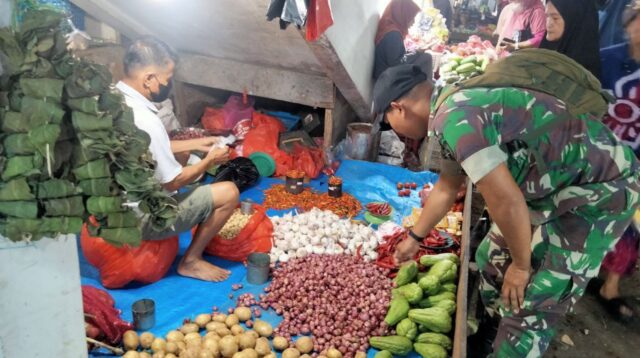 Babinsa Pantau Harga Sembako di Pasar Sentral Tanru Tedong