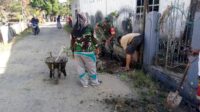 Terapkan sanitasi lingkungan yang sehat, Babinsa mengajak warga membuat saluran air.