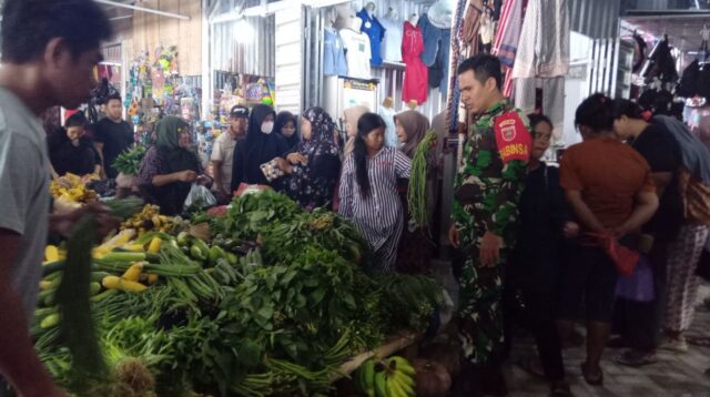 Blusukan Humanis Babinsa: Serka Anwar Pantau Harga Sembako Sambil Ngobrol Santai di Pasar Amparita