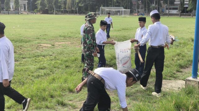 Personel Koramil 1420-05/Dua Pitue Bersama Pesantren dan Warga Gelar Aksi Jumat Bersih di Pitu Riawa