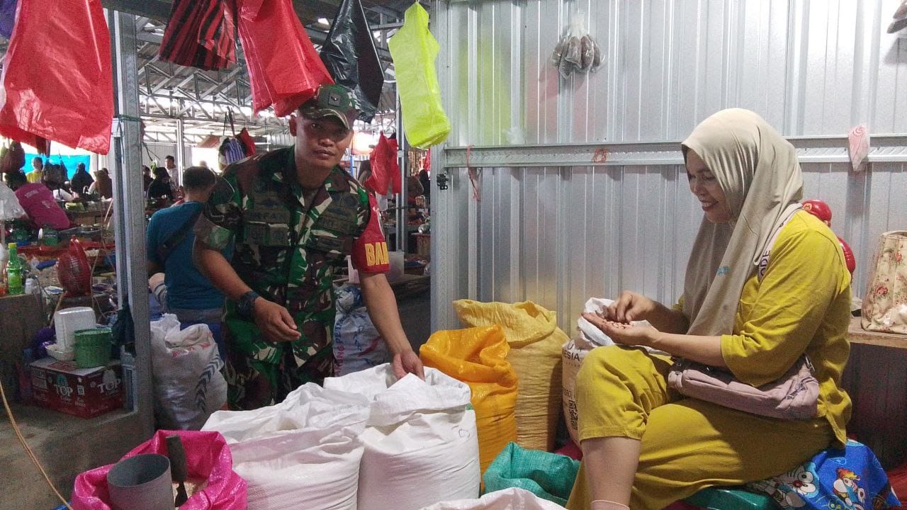 Serda Irfan Idrus melakukan pengecekan langsung di beberapa kios dan lapak pedagang untuk memastikan stok kebutuhan pokok seperti beras, minyak goreng, gula, telur, dan komoditas penting lainnya dalam jumlah yang cukup untuk memenuhi permintaan masyarakat serta membandingkan harga jual di pasar dengan Harga Eceran Tertinggi (HET) atau harga normal untuk mencegah adanya praktik penimbunan atau penjualan di atas kewajaran.